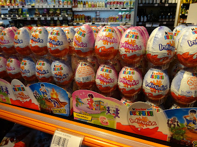 Along the Motorway, I think that's what they're called, French Autoroutes? I found Kinder Eggs at a multi purpose rest stop. Finally I got to try one!!!!