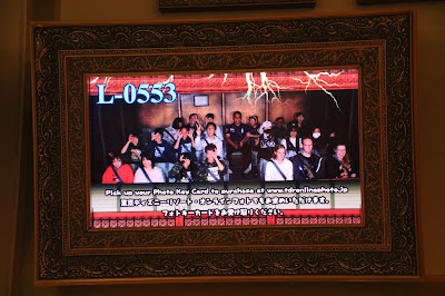While in line you enter a room where a presenter leads you through the idea of the ride, riding into the storm, and the beam you're going to use.  The presenter is live, it's a little play with effects, and even though it's all in Japanese, there's a screen above them that has abbreviated English.